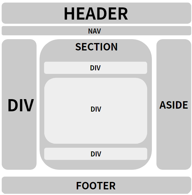 class에 이름을 붙혀서 사용하면 모든 작업이 가능하다 다만 이러면 div span 같은 의미가 없는 태그 이름만 보고 어떤 내용인지 유추할 수 없기에 header, section, article, aside 이런 태그들을 사용하여 명확하게 정의해야 합니다.